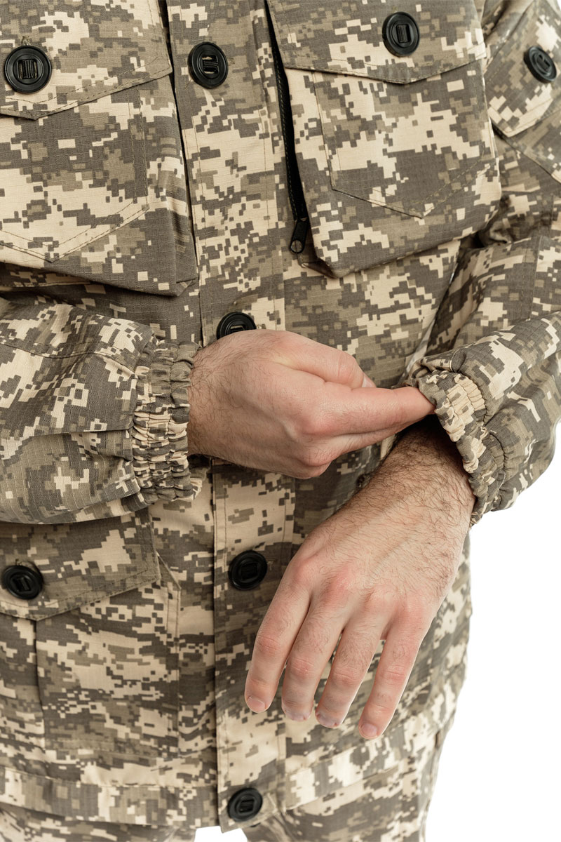 Утягивающие резинки на рукавах и штанах, в том числе на сгибах суставов, обеспечивают надежную фиксацию и защиту от ветра и холода.