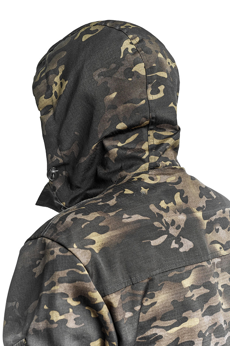 Капюшон куртки регулируется по объему, что позволяет настроить его на индивидуальный размер головы. Ветрозащитная планка на центральной молнии обеспечивает дополнительную защиту от ветра и холода.