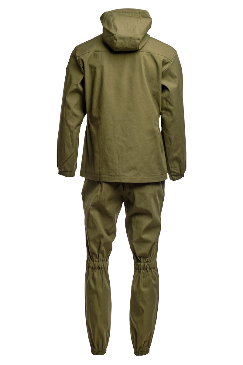 Брюки костюма Gorka Light оснащены широким поясом с шлевками, которые позволяют носить их комфортно и надежно на талии. Утягивающие резинки на рукавах и штанах, включая сгибы суставов, обеспечивают плотную посадку и защиту от проникновения насекомых.