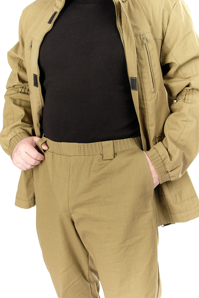 Брюки костюма Gorka Light оснащены широким поясом с шлевками, которые позволяют носить их комфортно и надежно на талии. Утягивающие резинки на рукавах и штанах, включая сгибы суставов, обеспечивают плотную посадку и защиту от проникновения насекомых.