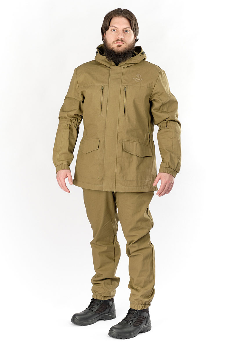 Летний мужской костюм Gorka Light состоит из куртки и брюк, созданных из прочной и дышащей ткани Палатка, выполненной из 100% хлопка, которая имеет отличную воздухопроницаемость и приятное ощущение на коже даже в самые жаркие дни. Также костюм имеет водоотталкивающую пропитку WR (water repellent), которая защищает от небольшого количества влаги, такой как легкий дождь или брызги.