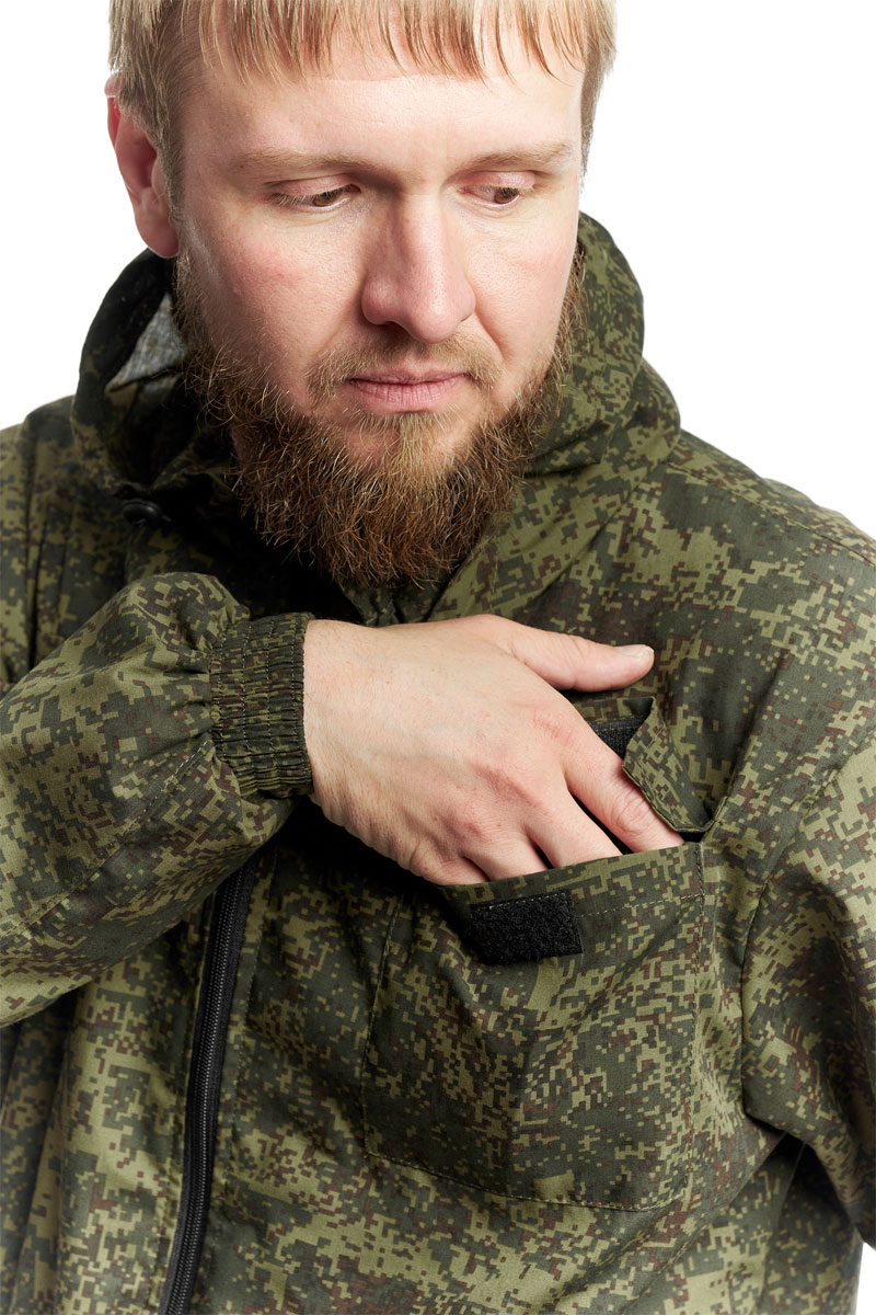Низ куртки и рукавов обработан широкой эластичной тесьмой резинкой, что обеспечивает хорошую посадку и предотвращает проникновение холодного воздуха или насекомых. Костюм также устойчив к UF-излучению, что обеспечивает дополнительную защиту от солнечных лучей.