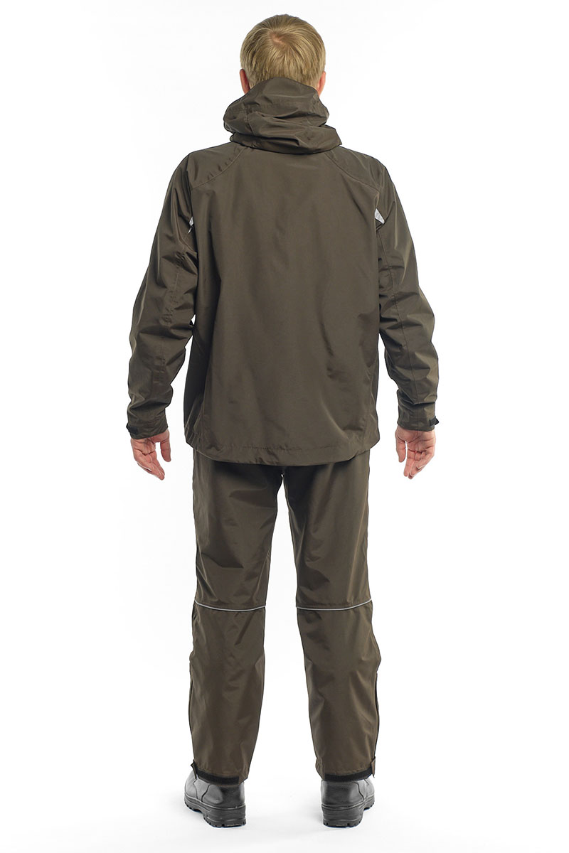 Температурный режим составляет от +5 до +20°C. Костюм оснащен влагозащитными молниями и 6 функциональными карманами.