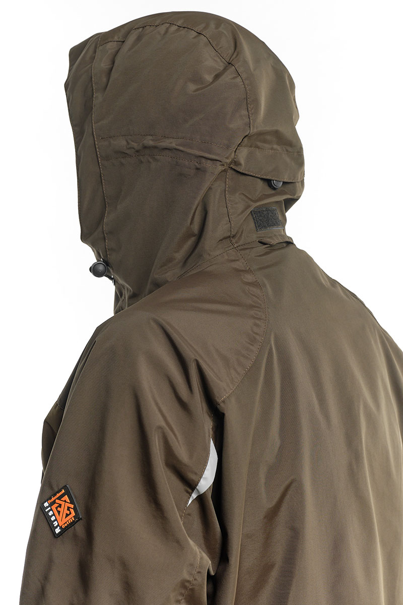 Анатомический крой, капюшон с регулировкой по объему, брючные помочи на отстегивающихся шлевках, а также регулируемые по объему рукава и низ брюк делают его удобным и функциональным.