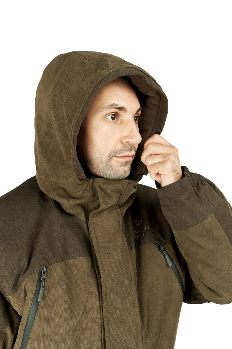 - Регулировка капюшона и низа куртки по объёму
