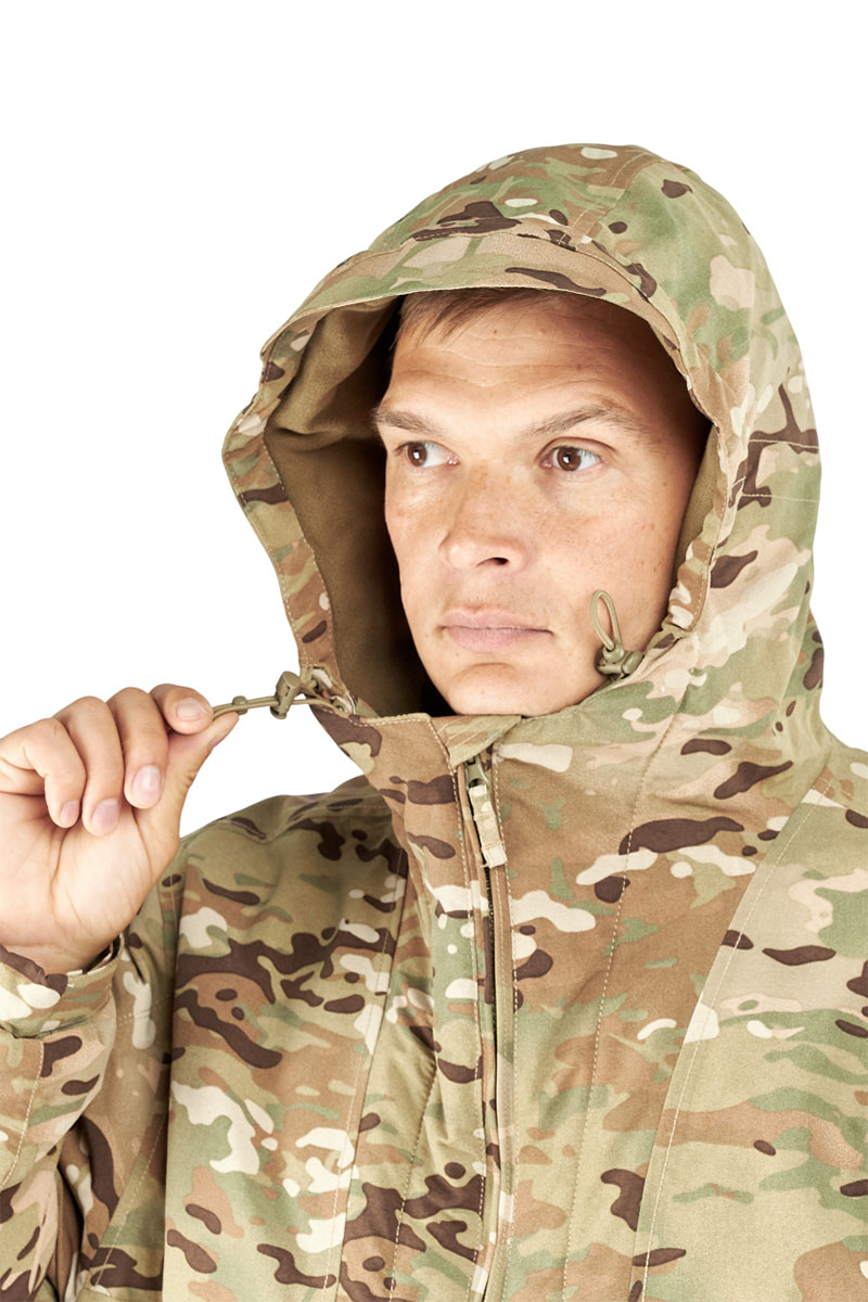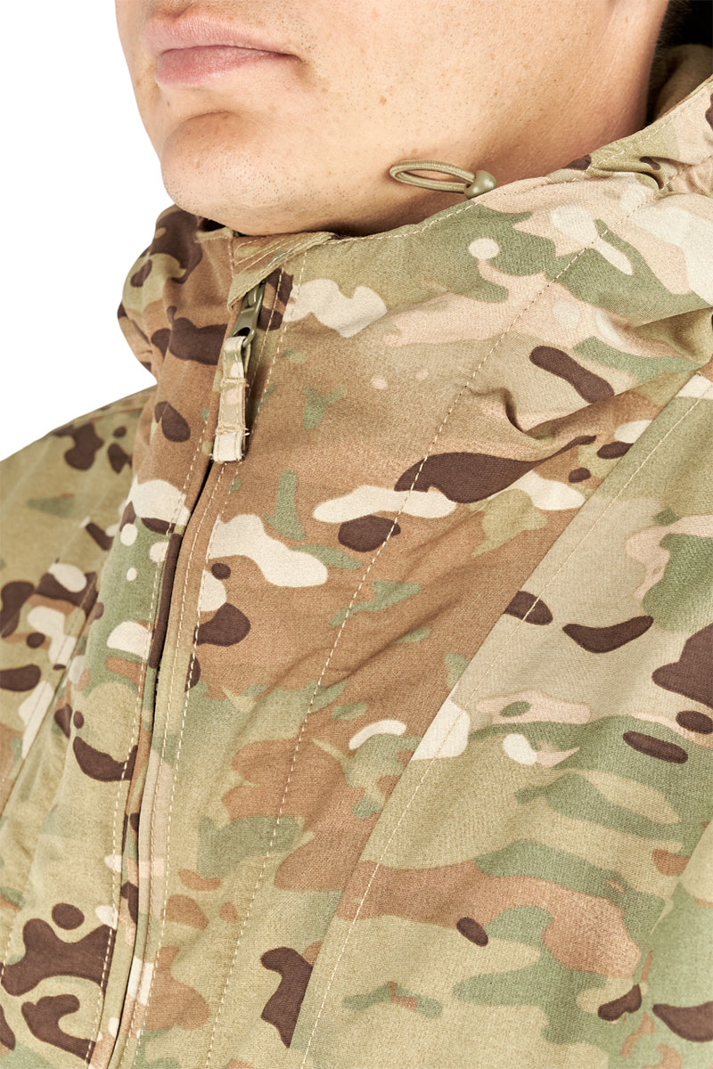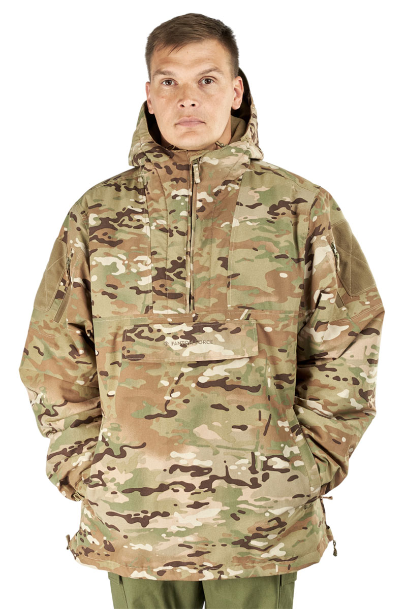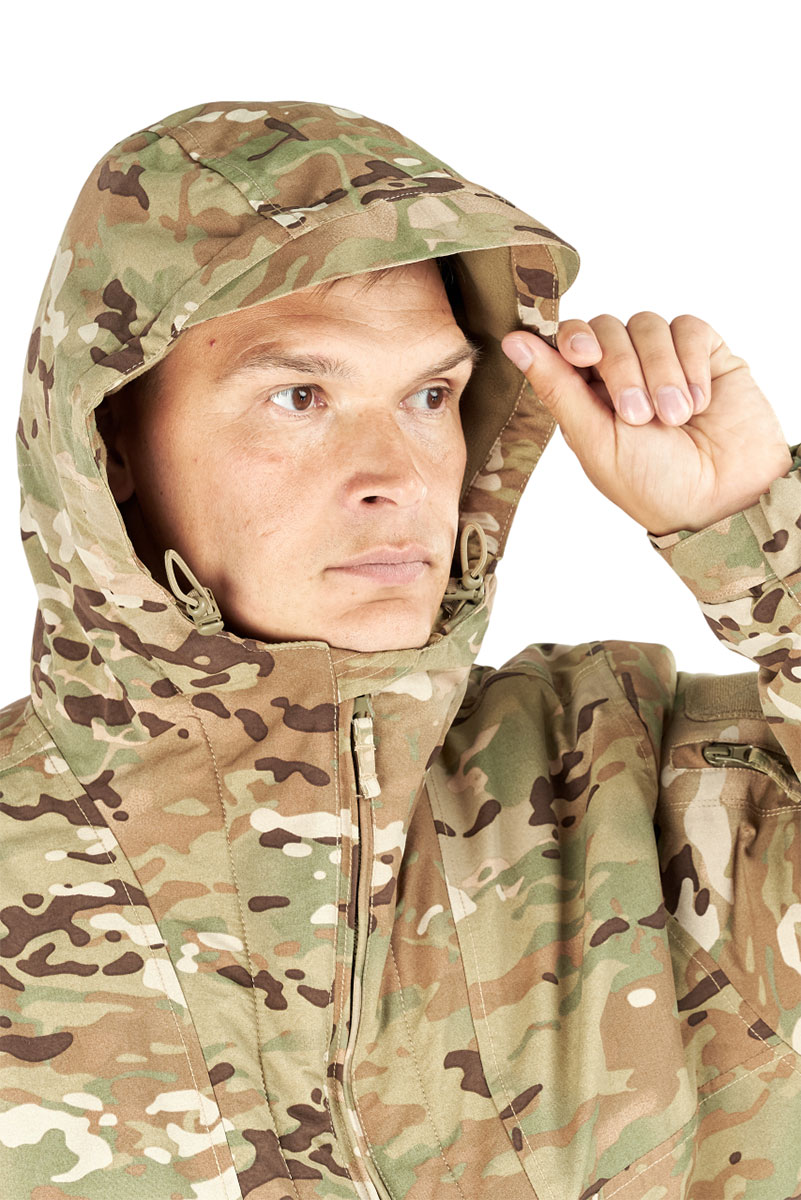 Боковые манжеты по низу куртки позволяют регулировать ширину куртки, обеспечивая идеальную посадку. Объемный нагрудный карман обеспечивает достаточное место для хранения необходимых предметов, а на каждом рукаве есть дополнительный карман для мелочей и велькро под шевроны на липучках.